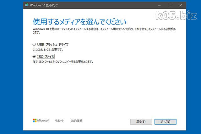 上記からツールをダウンロードして使用します。ISOファイルとして残したかったので、ISOファイルを選択しました。どうも最新しか作れないようで、今だと、Windows10(バージョン2004)になります。