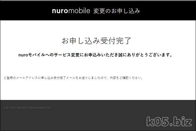 変更申し込みをすると、変更申し込みを受け付けましたよというメールがくるだけです。0 SIMの管理画面にはまだログインできます。nuroモバイルの管理画面にはログインできません。