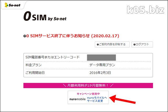 ※nuroモバイルへのサービス変更が完了した時点で0SIMのご利用者向けページにはログインできなくなります。