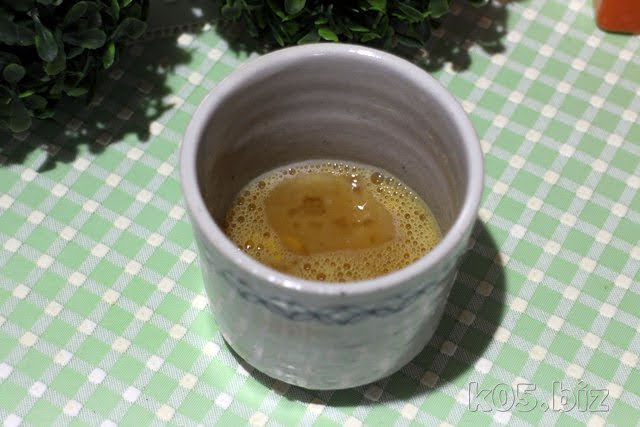 適当な容器に入れる。今回は、蕎麦猪口(そばちょこ)を使いました。