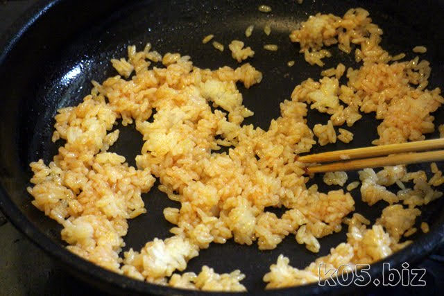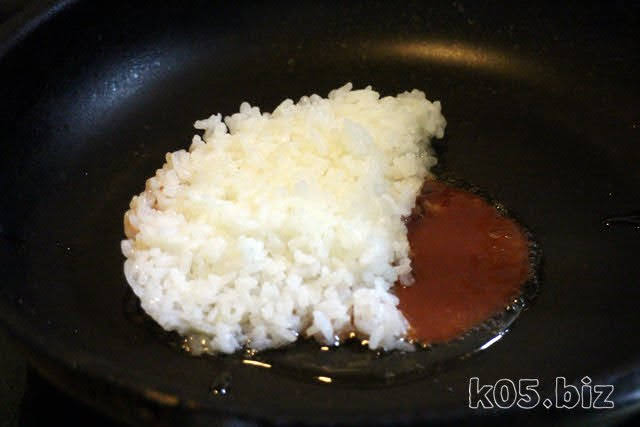 冷ご飯をレンジで温めて、投入。この後に、火をつけて炒める。