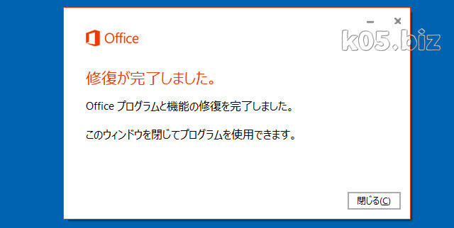 ネットでの事例を見る限りでは、Officeの修復をするのが一番簡単で手堅い感じです。Officeのバージョン関係なく、この路線が有効のようです。