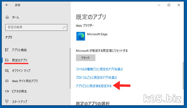既定のアプリを変更するには、「設定」>「アプリ」>「既定のアプリ」に移動してください。