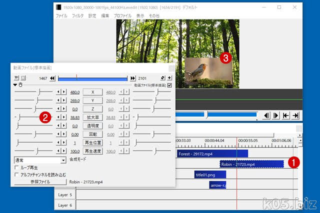 画像をダブルクリックすると、設定ウインドウが開くので、そこで拡大、透明度の設定などができます。