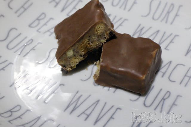 表面はつるっとした感じで、普通のブラックサンダーとは違う雰囲気ですね。色合いも違いますね。
