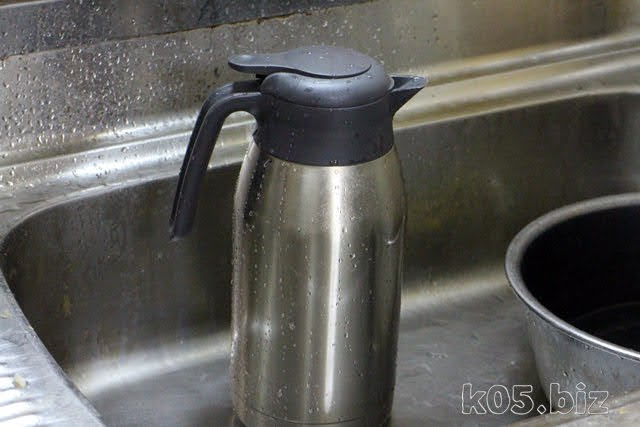 「THERMOS ステンレスポット 2.0L」です。口が広めで、手を入れて洗えるので、食器洗い洗剤で洗ってはいました。Amazonの購入履歴をみると、2010年10月に購入していました。
