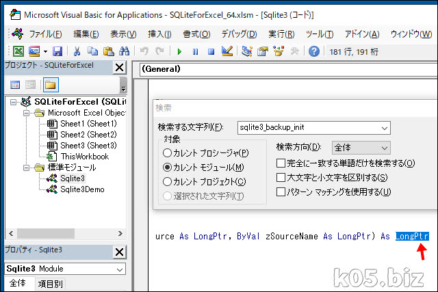 SQLiteForExcel_64.xlsmの標準モジュールのSqlite3内の「sqlite3_backup_init」の部分の一部を修正します