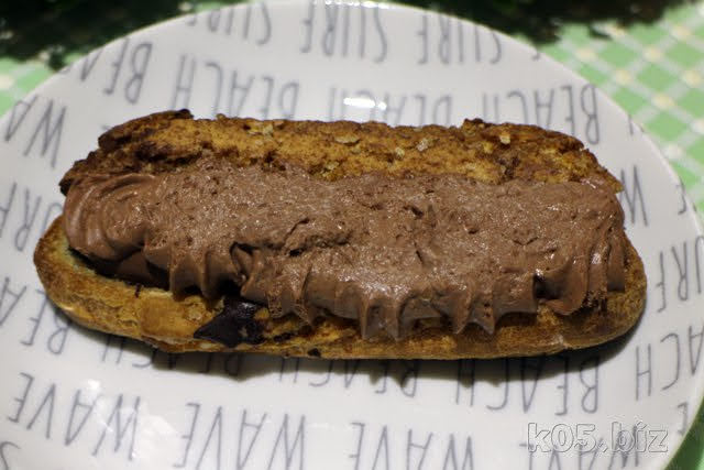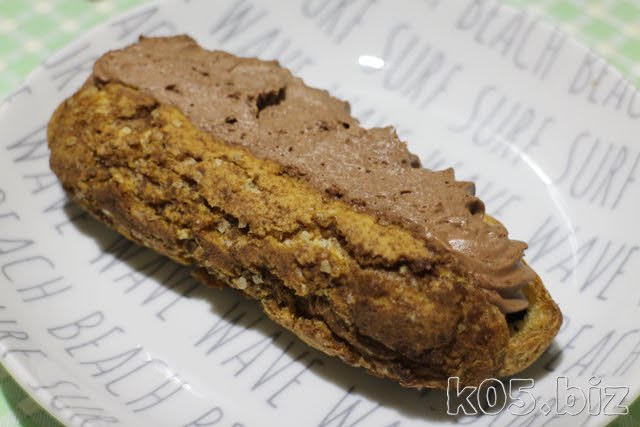 チョコクリーム(ショコラホイップクリーム?)が、おいしいですね。あと、中心部に板チョコが入ってて、全体的な味のバランスと食感がよいと思います。