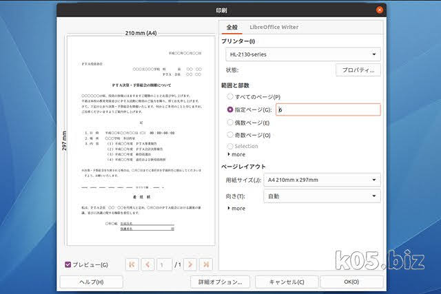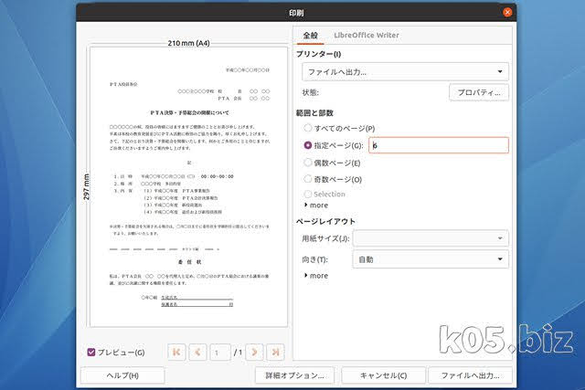 WordのテンプレートをLibreOffice Writerで印刷してみます