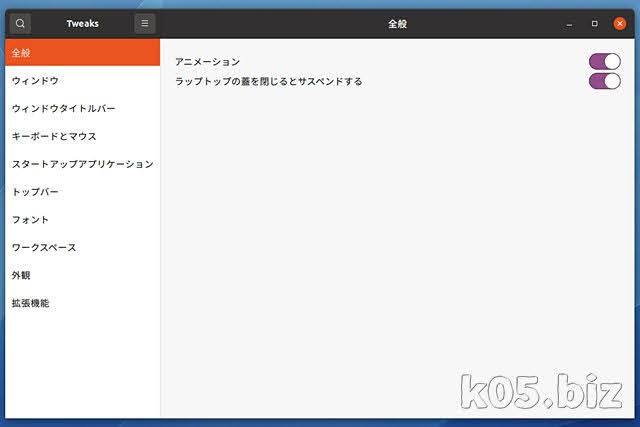 GNOME Tweaksを導入すると、細かい設定がGUIからできるようになります