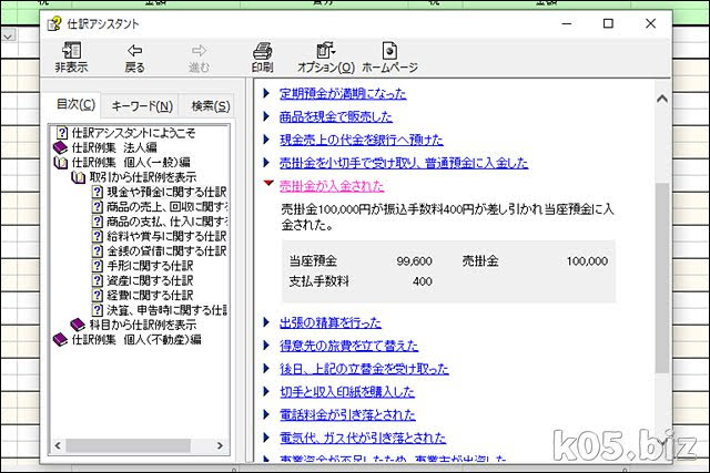取引事例から、仕訳例がわかる。また、勘定科目からも仕訳事例がわかるようになっています。