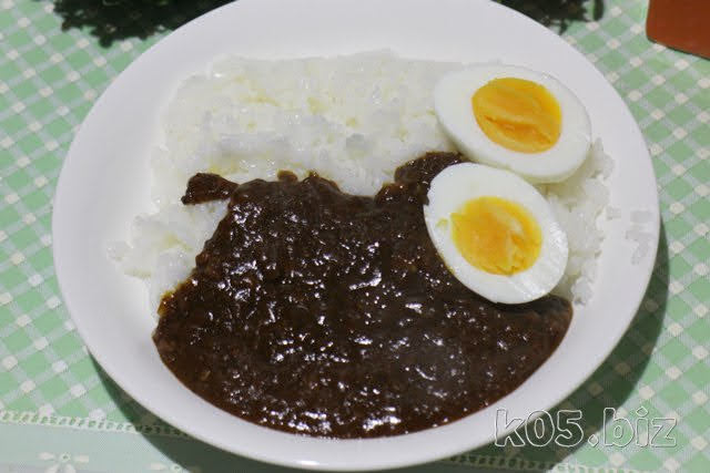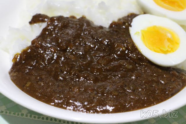 銀座カリーっぽいキーマカレーだと思います。僕は、銀座カリーよりこっちのほうが美味しいと思うけど、相方が、これ駄目だそうで・・。なんか、生卵と合わせて食べてた。