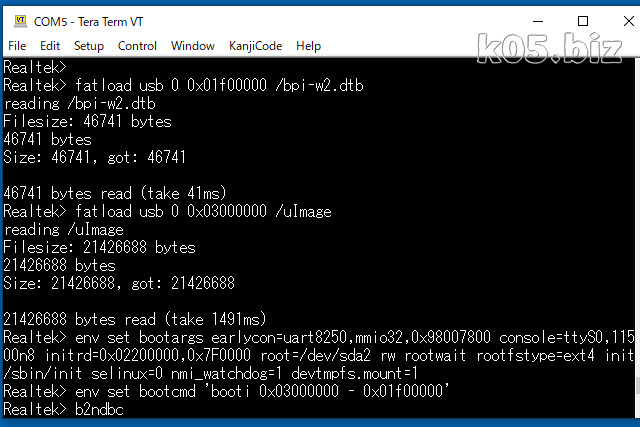 u-boot のコンソールで上記コマンドを順番に実行していきます