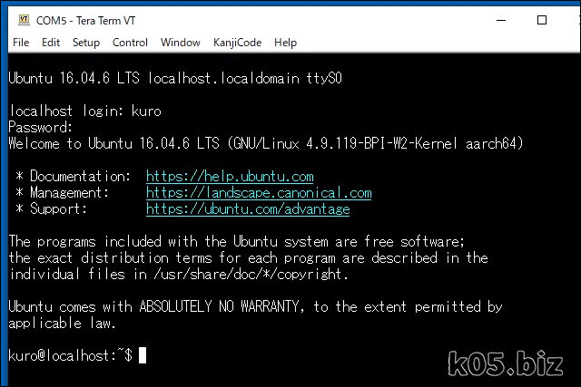 ・Tera Termで、シリアルコンソールを表示