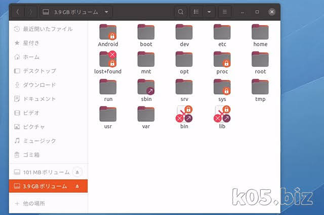 USBメモリーを2つの領域にわけて、それぞれFAT形式、Ext4形式で作成します。