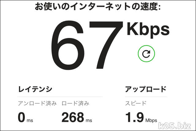 時間帯とか場所とか関係なく、常にこのぐらいの遅さ。128kbpsどころか、その半分程度しか出てない。あと、初期バーストとかもないので、ものすごく遅い。