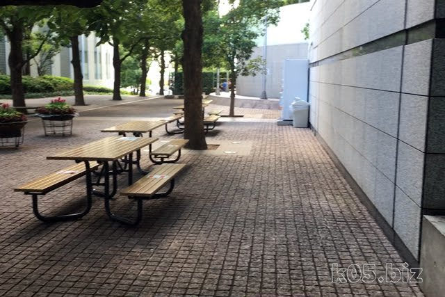 施設の周りには、座る場所とかがあって、そんなに困らなさそうだった。あと、日陰になっていて、川近くで、風も吹いていて、過ごしやすい感じですね。