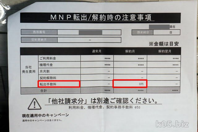 2枚目は、MNP転出に関する注意事項が、小さい字でこまごまと書かれてます。小さい字である必要あるのかなぁと思わなくもなく。