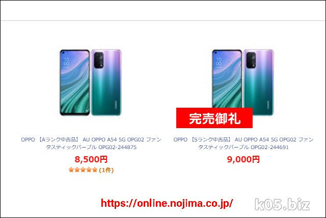 【Aランク中古品】 AU OPPO A54 5G OPG02 ファンタスティックパープル | ノジマオンライン