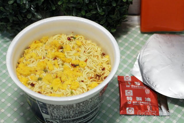 付属の特製油ですが、室温でも固まらないので、植物油系統なんじゃないかなぁと思う。ラー油っぽい赤い色合いで、変なにおいも香りもしないので、良かったです。カップ麺で、後入れの油がついてるときは、僕はたいてい使わないです。