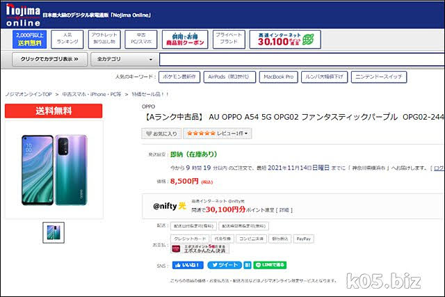 AU OPPO A54 5G OPG02 【Aランク中古品】 AU OPPO A54 5G OPG02 ファンタスティックパープル | ノジマオンライン 850…