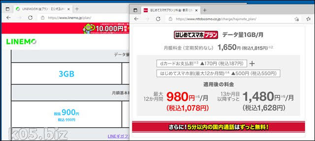 LINEMOミニプランとはじめてスマホプラン(docomo)の比較検討